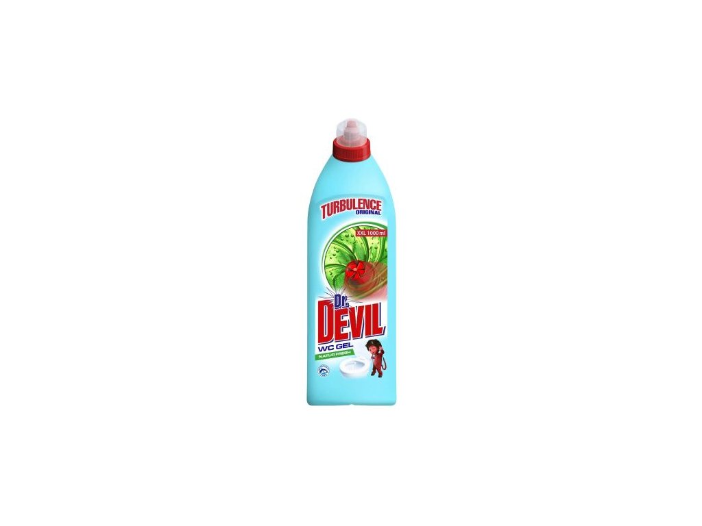 Dr. DEVIL WC Gel Turbulence Natur Fresh je účinný čisticí prostředek pro toalety, který díky své gelové konzistenci účinně odstraňuje nečistoty a vodní kámen, přičemž zanechává svěží přírodní vůni.